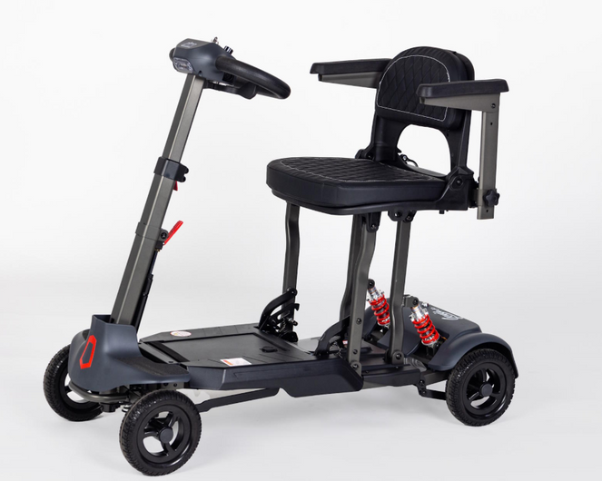 Airline-friendly and fitted with a reliable lithium battery, this scooter is ready for holidays, errands, and everyday independence.